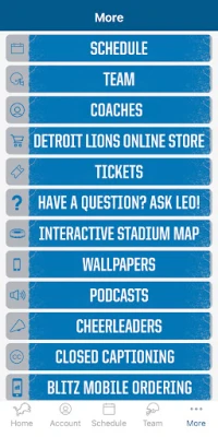 Social media: Aggregated twitter of the Lions’ official tweets, check in to the stadium on game-day, one-click tweet of all media items, one-click facebook posting of all media items