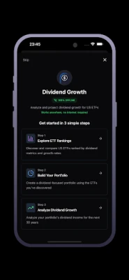 Dividend Growth helps you build wealth through dividend investing by analyzing US ETFs and projecting your dividend income for the next 30 years. Track, compare, and optimize your dividend portfolio with powerful analytics - all working 100% offline on your device.