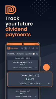 Simply insert your current stocks into your personal portfolio. On the individual payment date, you'll see the amount of your dividend earnings.