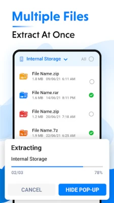 Easily compress files into ZIP or RAR formats or extract them in seconds. Need to handle password-protected files? No problem! Our app supports opening and extracting files with passwords, ensuring you can securely manage your archives.