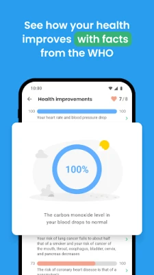 ❤️ Your health as an ex-smoker: QuitNow gives you a list of health indicators that explain how your body improves day by day. These indicators are based on information from the World Health Organization, and we update them as soon as the WHO releases new data.