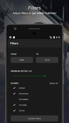 It’s a simple application, which uses a huge movie database to prepare random suggestions for you according to selected filters.
