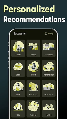 Smart AI Suggestions: Instantly unlock top picks and recommendations based on your unique tastes. Quick Survey: Answer a few simple questions to receive tailored movie, book, and gift suggestions. Multi-Category Inspiration: From books and movies to gift ideas and hobbies—always fresh recommendations. Evolving Selections: As your preferences shift, so do your suggestions—never stale. Share & Inspire: Found something great? Share your favorite picks and suggestions with friends and family. Effortless Discovery: Our intuitive suggestor interface makes Browse and saving recommendations a breeze. Download now and let our AI recommender transform how you discover new ideas!